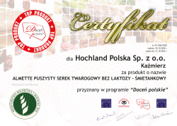Ser Kremowy Hochland, Naturalnie, że pyszny!  Gouda oraz Almette puszysty serek twarogowy bez laktozy śmietankowy otrzymały certyfikaty „Doceń polskie” przyznawane w ramach Ogólnopolskiego Programu Certyfikacyjnego „Doceń polskie”. Oba produkty zdobyły maksymalne noty we wszystkich kategoriach i przyznano im najwyższy Laur Programu - Godło “Doceń polskie TOP PRODUKT”. - To dla nas duże wyróżnienie, a zarazem mobilizacja do dalszej pracy. Je...