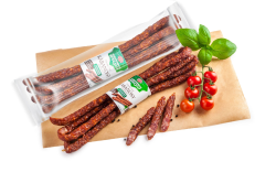 Aromatyczne kabanosy z dodatkiem jałowca z linii Kurpiowskie Specjały to nowa propozycja w portfolio ZM Pekpol. Ta pyszna przekąska została przygotowana z najwyższej jakości mięsa wieprzowego: 100 g produktu zostało wyprodukowane ze 172,4 g.