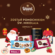 Święta Bożego Narodzenia coraz bliżej, dlatego już po raz czwarty ruszyła organizowana przez Fundację „Wawel z Rodziną” i Wawel ogólnopolska akcja „Zostań pomocnikiem Świętego Mikołaja”, której partnerem jest sklep internetowy Frisco.pl. Dzięki niej każdy klient sklepu może przyczynić się do pomocy dzieciom z placówek opiekuńczo-wychowawczych. Kolejna edycja świątecznej akcji „Zostań pomocnikiem Świętego Mikołaja” wystartowała 14 listopad...