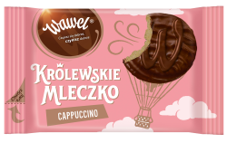 Asortyment Królewskiego Mleczka: Waniliowego, Śmietankowego i Malinowego poszerzył się o nowy, czwarty wariant smakowy - Królewskie Mleczko Cappuccino. Intensywny smak cappuccino, został zamknięty w oryginalnym okrągłym kształcie mleczka i oblany wyśmienitą, rozpływającą się w ustach czekoladą z Wawelu...