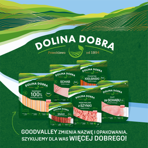 Goodvalley – producent mięsa z Przechlewa zmienił nazwę na Dolina Dobra, aby jeszcze bardziej podkreślić swoje lokalne pochodzenie i odpowiedzieć na potrzeby konsumentów. Wraz z nową nazwą do portfolio wprowadzone zostały nowe produkty.