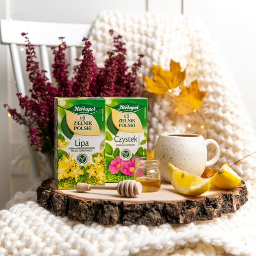 Herbatki ziołowe Zielnik Polski to napary o prozdrowotnych właściwościach, dlatego tak dobrze sprawdzają się także w zimowym okresie. Powstają z wyselekcjonowanych surowców, które są pozyskiwane od sprawdzonych dostawców i muszą spełnić wysokie normy jakościowe. Herbatka Herbapol Czystek zawiera 100% liści czystka, który jest źródłem naturalnych przeciwutleniaczy i wspomaga odporność organizmu. Natomiast naturalnym wsparciem dla układu oddechowego będzie napar Herbapol Lipa, w 100% z kwiatostanu lipy. Herbatki Herbapolu Zielnik Polski to nie tylko dobroczynne działanie, ale też czysty, pełny smak ziół i głęboki aromat, którymi warto się cieszyć każdego zimowego dnia czy wieczoru.