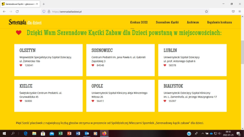 - Uniwersytecki Dziecięcy Szpital Kliniczny w Białymstoku tak mocno walczył i zabrakło mu troszkę głosów do zwycięstwa. Uznaliśmy więc, że zasługuje na „Serenadowy kącik zabaw”. Będzie żółto, będzie serowo, będzie radość dzieci! Bo przecież o to nam wszystkim chodzi – dodaje Mostowiec.