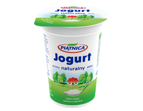 Jogurt naturalny z Piątnicy posiada niezmienny od momentu wprowadzenia prosty skład – zawiera jedynie mleko i żywe kultury bakterii jogurtowych. Wyróżnia się on także kremową konsystencją i wyjątkowo delikatnym smakiem. To doskonały produkt dla osób w każdym wieku, dbających o zdrową i dobrze zbilansowaną dietę. Jogurt naturalny dostarcza pełnowartościowego białka, a także wapnia – zawiera aż 140 mg wapnia na 100 g produktu. To pyszna i zdrowa przekąska na każdą porę dnia. Smakuje wyśmienicie bez żadnych dodatków, jedzony bezpośrednio z kubeczka, jak również z granolą, owocami, płatkami zbożowymi, otrębami czy musli. Idealnie sprawdza się do przygotowania lekkich deserów, sałatek oraz sosów.