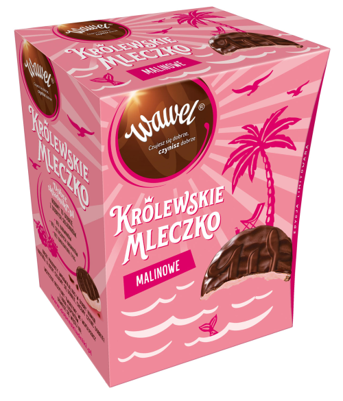 Wawel po raz kolejny postawił na oryginalny, okrągły kształt pianek i indywidualne pakowanie. Na półkach sklepów Królewskie Mleczko Malinowe kusi wzrok charakterystycznym różowym opakowaniem z elementami nawiązującymi do relaksu i beztroski. Do zakupu zachęca prezentowa forma opakowania oraz nowoczesny design.