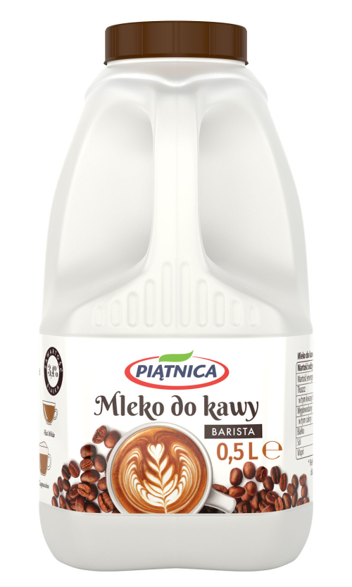 OSM Piątnica wprowadziła w marcu do swojej oferty nowość – specjalistyczne Mleko do kawy. Produkt dostępny jest w charakterystycznej butelce z rączką o pojemności 0,5 l. Mleko do kawy Barista z Piątnicy wyróżnia się wysoką zawartością białka – 3,4 g w 100 ml, dzięki czemu idealnie się pieni.