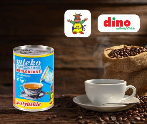 W całej Polsce w sieci handlowej Dino pojawiło się mleko zagęszczone niesłodzone 411g w puszce - produkt Spółdzielni Mleczarskiej w Gotyniu.