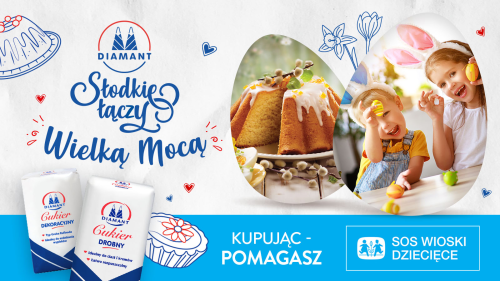 Jeden z największych producentów cukru w Polsce ponownie zachęca do świadomych, przedświątecznych zakupów. Wielkanocne wypieki z marką Diamant to pośrednie wsparcie finansowe dla potrzebujących dzieci z SOS Wiosek Dziecięcych.