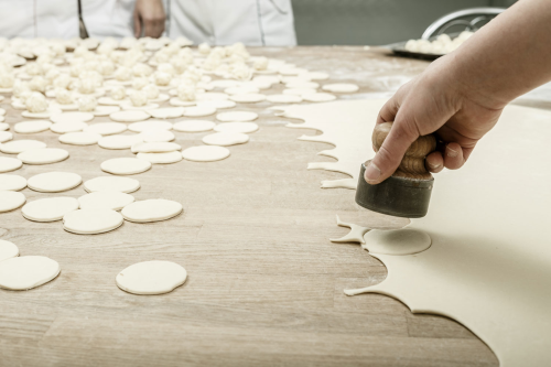Po pierwsze ręczna robota. Każdą z naszych potraw przygotowujemy samodzielnie. Dzięki temu mamy pełną kontrolę nad całym procesem produkcji. Tylko w ten sposób można osiągnąć prawdziwy, domowy smak. Nasze kucharki osobiście wbijają świeże jajka do ciasta, wałkują je na idealną grubość, wykrawają kółka na pierogi, przygotowują farsz z warzyw, mięsa lub owoców, doprawiają świeżo zmielonym pieprzem i solą, nakładają farsz na ciasto, dokładnie lepią pojedyncze pierożki. Żebyście podczas gotowania w domu mogli cieszyć się prawdziwym i smacznym posiłkiem.
