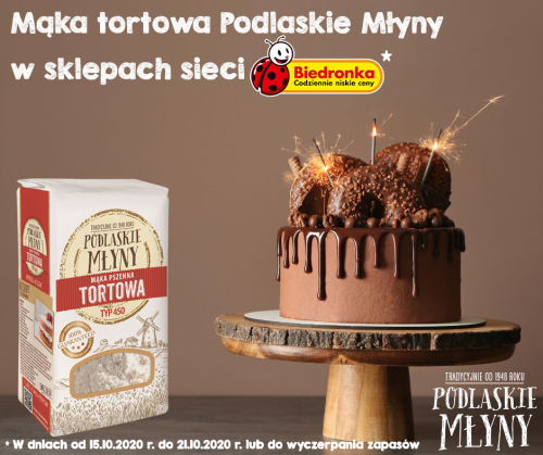 Podlaskie Zakłady Zbożowe S.A. w Białymstoku, które na rynku istnieją nieprzerwanie od przeszło 70 lat, w ostatnim czasie zdecydowały się, wyjść naprzeciw oczekiwaniom Klientów i wprowadziły zupełnie nową markę – Podlaskie Młyny. Już w październiku, przez tydzień klienci Biedronki w województwie podlaskim, w północno-wschodniej części województwa warmińsko - mazurskiego oraz części Mazowsza będą mogli zaopatrzyć się w Mąkę Tortową.