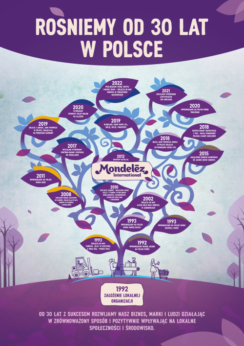 Mondelez Polska świętuje swój jubileusz pod hasłem: „Rośniemy od 30 lat w Polsce”. Idealnie oddaje ono charakter działalności firmy. To bowiem nie tylko wieloletni lider w branży słodkich przekąsek, ale również firma, która od trzech dekad z sukcesami rozwija biznes, marki i ludzi, pozytywnie wpływając na środowisko i lokalne społeczności. Rocznica ta jest doskonałym momentem na podsumowanie tego, co udało się osiągnąć firmie w Polsce.