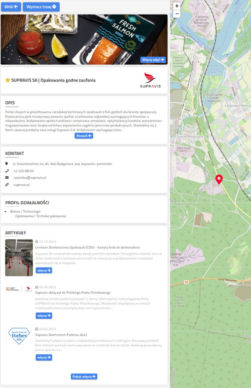 - Zamieszczenie firmy na liście firm oraz na mapie.