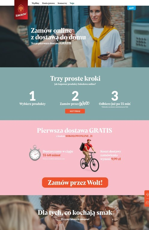 Dokonanie zamówienia jest proste, a zakupione produkty są dostarczane „pod drzwi” nawet w ciągu 35 minut. Dostawy realizuje firma Wolt, a ich zasięg obejmuje obecnie określone rejony Warszawy. Pierwsza dostawa (z podanym na stronie kodem) jest bezpłatna. – Taka formuła zakupów online jest bardzo wygodna dla konsumenta – podkreśla Cezary Jasiński, Dyrektor ds. Marketingu w Sokołów S.A. – Planujemy dalszy rozwój w tym obszarze - tak, by z naszego sklepu firmowego mogło korzystać coraz szersze grono klientów.