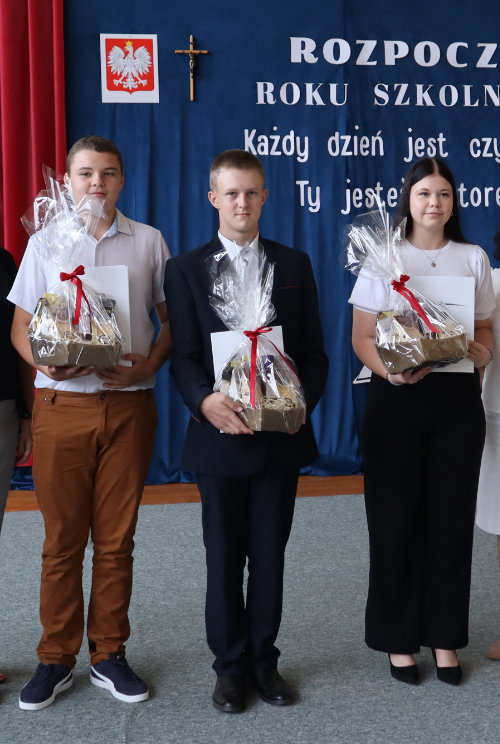Podczas uroczystości wręczone zostały również stypendia dla trzech uczniów technikum, którzy osiągnęli najwyższe średnie ocen. Otrzymali je uczniowie klasy II: